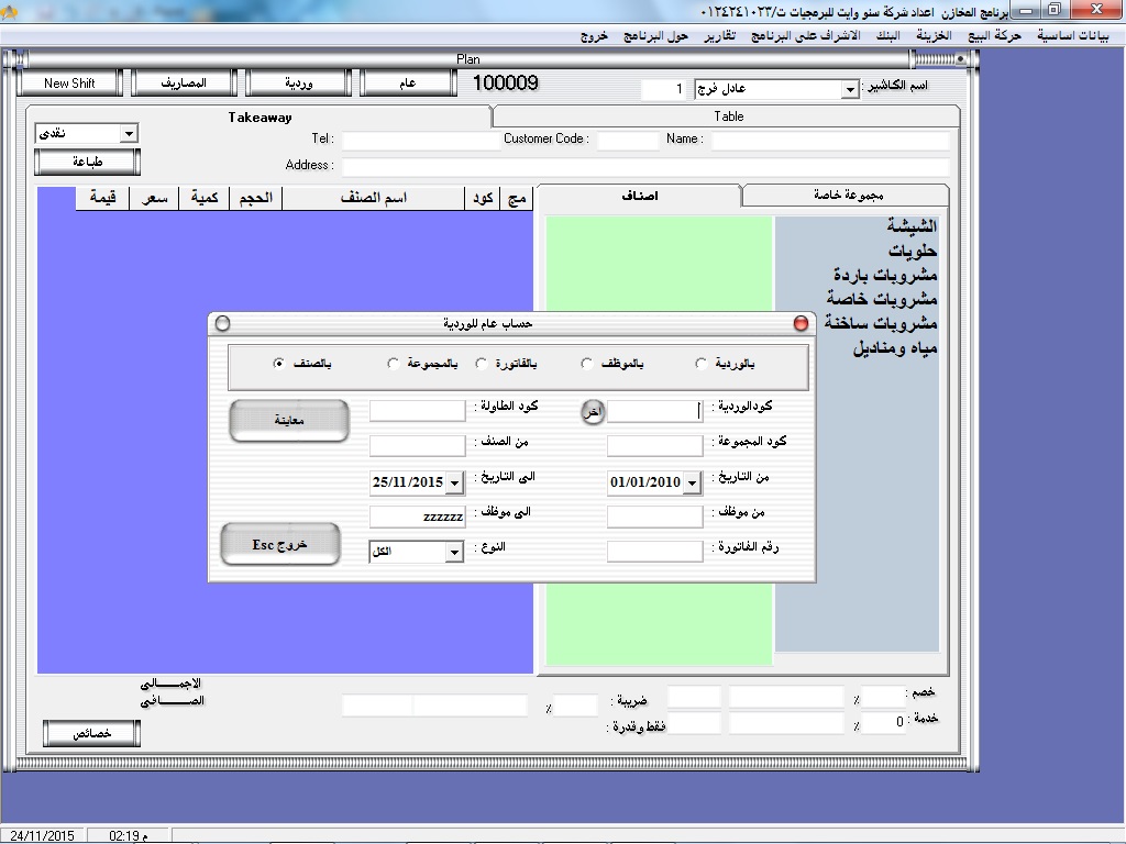 يتيح البرنامج إضافة عدد لا نهائى من أكواد الأصناف حسب الحاجة