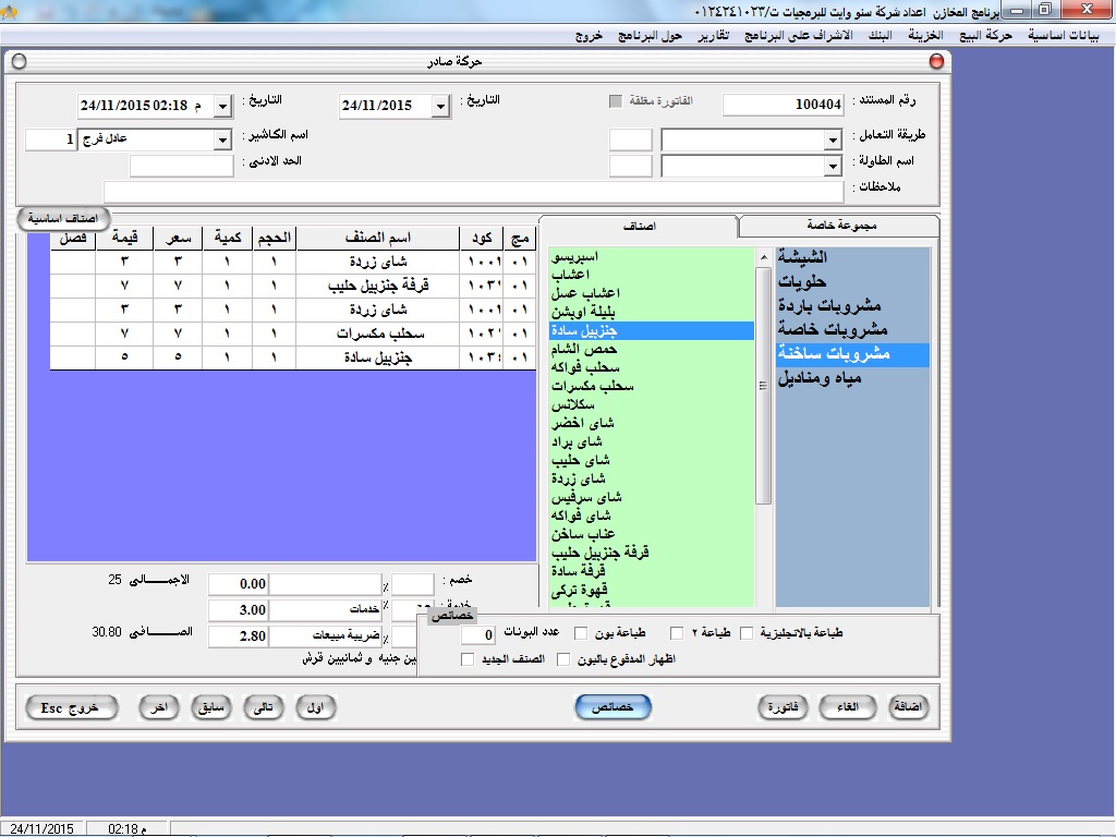 احتساب ضريبة المبيعات والخدمة آليا عند إدخال الفواتير وإظهار تقارير مفصله ومجمعه بها