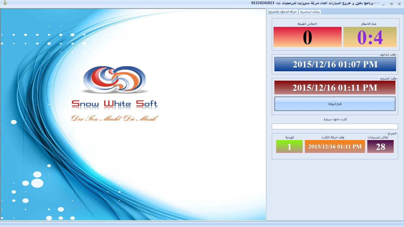 • تتكون المنظومة من ثلاثة أقسام (بوابة آلية ، برنامج الى يقوم بالتحكم فى حركة الدخول والخروج، صناعة وطباعة الكروت وتجربتها قبل العمل بها)